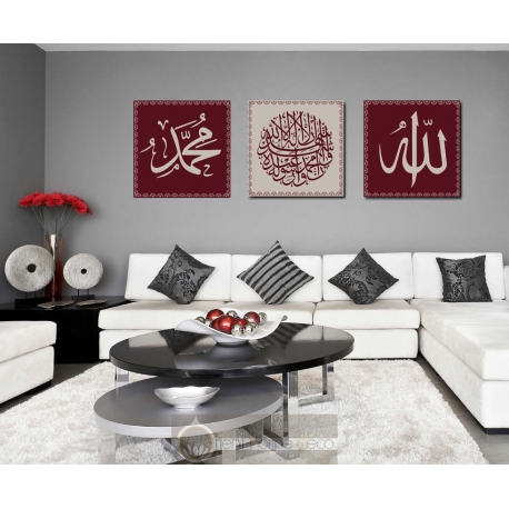 Tableaux Triptyque Calligraphie Islam : Allah swt, Chahada, Mohamed sws